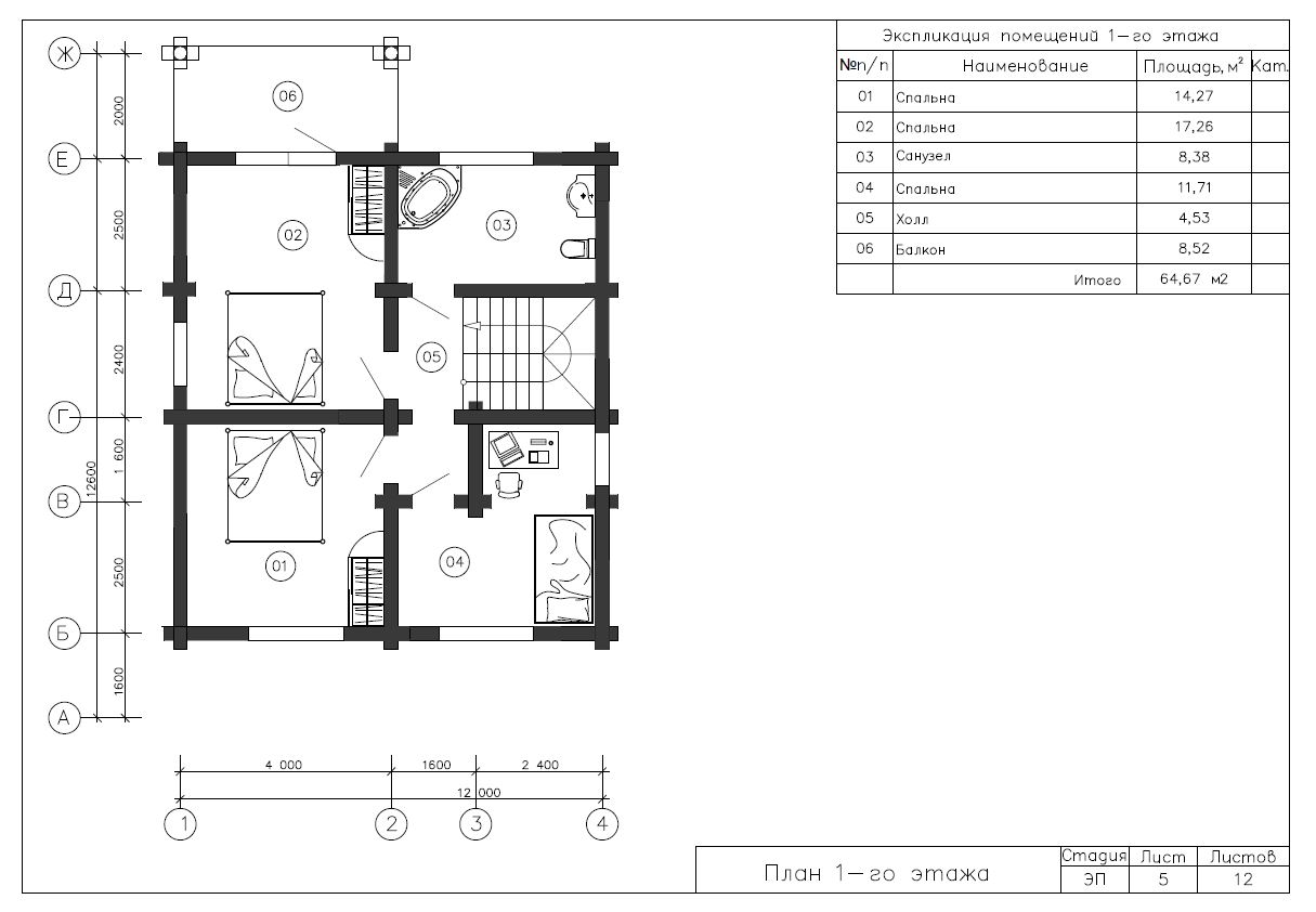 Проект дома из оцилиндрованного бревна №2